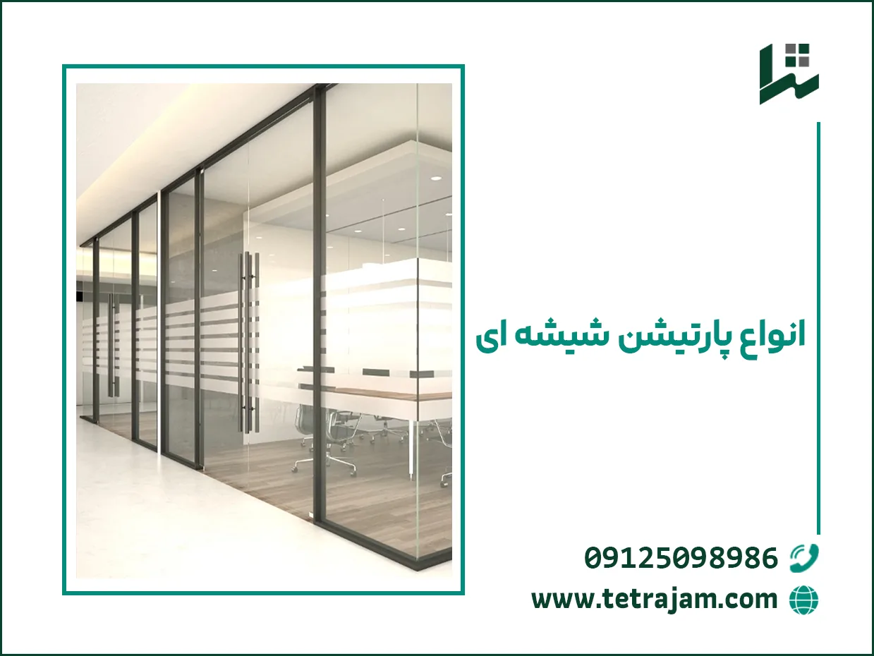 پارتیشن شیشه ای انواع مختفی دارد. از جمله پارتیشن شیشه ای فریم لس ، پارتیشن های شیشه ای فریم دار ، پارتیشن شیشه ای دوجداره ، پارتیشن شیشه ای تک جداره ، پارتیشن های شیشه ای متحرک و پارتیشن شیشه ای رنگی .