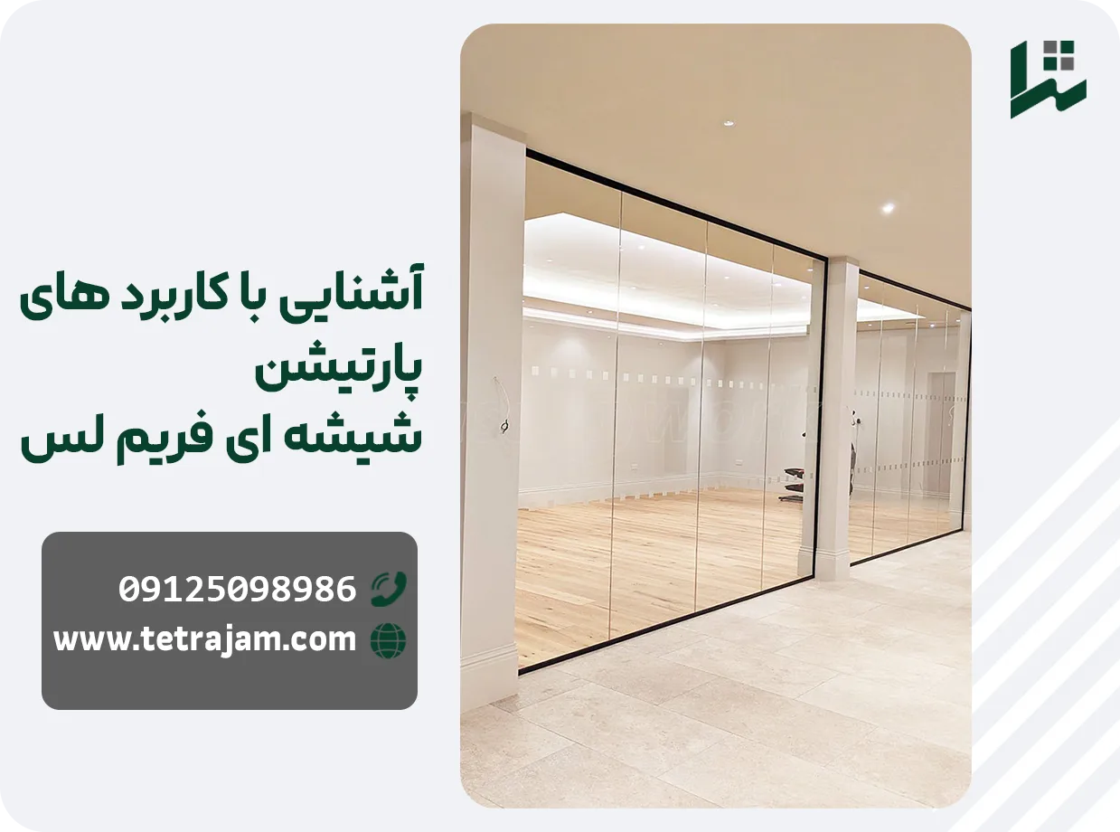 از شیشه ها می توان برای طراحی و نصب انواع پارتیشن شیشه ای استفاده کرد که برای جداسازی و تفکیک بخشهایی از خانه و یا اداره کاربرد دارد. پارتیشن شیشه ای دارای انواع مختلفی است که یکی از آن ها، پارتیشن فریم لس (Frameless) است.
